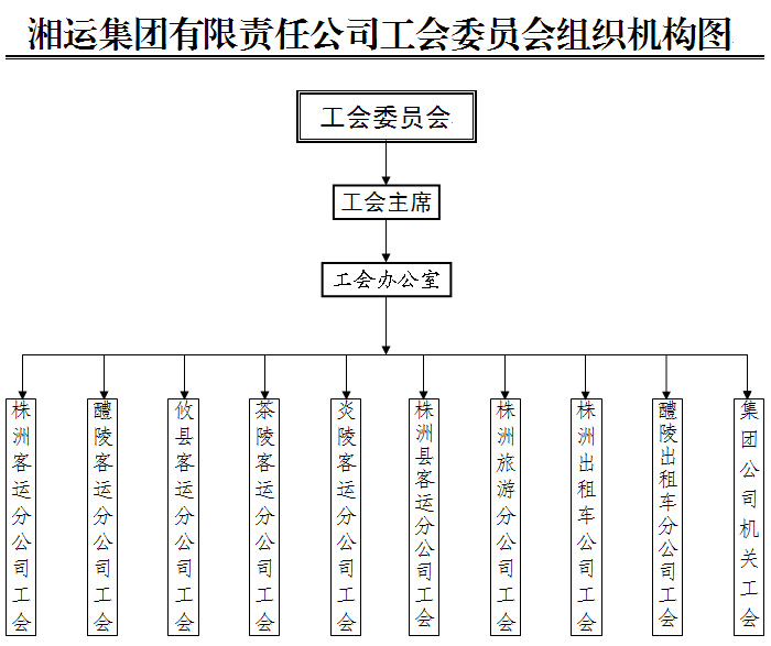 湘運(yùn)集團(tuán)有限責(zé)任公司系湖南省株洲地區(qū)最具規(guī)模、舉足輕重的專業(yè)化道路運(yùn)輸龍頭企業(yè),是以運(yùn)輸產(chǎn)業(yè)為主,房地產(chǎn)開(kāi)發(fā)、商貿(mào)餐飲等為輔的多元化經(jīng)營(yíng)的企業(yè)集團(tuán)。集團(tuán)公司設(shè)工會(huì)委員會(huì),下設(shè)9個(gè)二級(jí)工會(huì),現(xiàn)有工會(huì)會(huì)員1026人,員工入會(huì)率達(dá)100%。